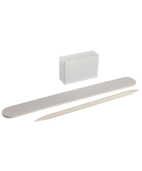 W skład zestawu wchodzą narzędzia pilnik, polerka i drewniany sztyft, które idealnie nadają się do pracy z naturalnymi paznokciami.