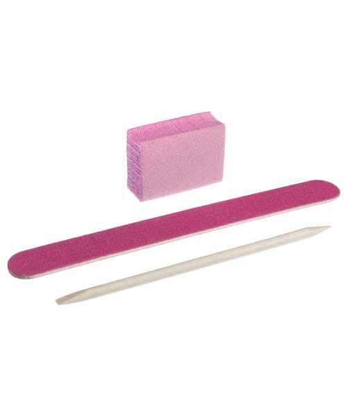 W skład zestawu wchodzą narzędzia pilnik, polerka i drewniany sztyft, które idealnie nadają się do pracy z naturalnymi paznokciami.