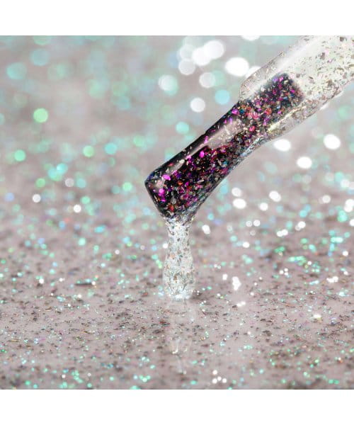 - Idealny zarówno jako samodzielne wykończenie, jak i w połączeniu z kolorową bazą — szczególnie czarną, która podkreśla głębię i intensywność efektu.