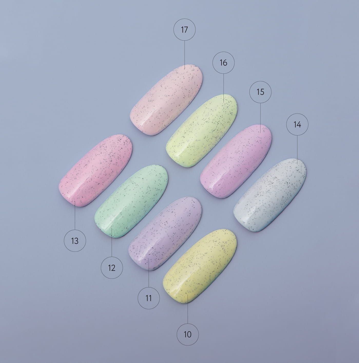 Lakier №13 AS to stylowy lakier hybrydowy o różowym odcieniu z czarnymi wtrąceniami, które tworzą efekt przypominający skorupkę przepiórczego jajka. Dzięki swojej unikalnej formule lakier łączy w sobie elegancję klasycznego koloru z kreatywnym, teksturowym wykończeniem. Tekstura – emalia o gładkim połysku, która zapewnia idealne pokrycie i trwałość stylizacji.