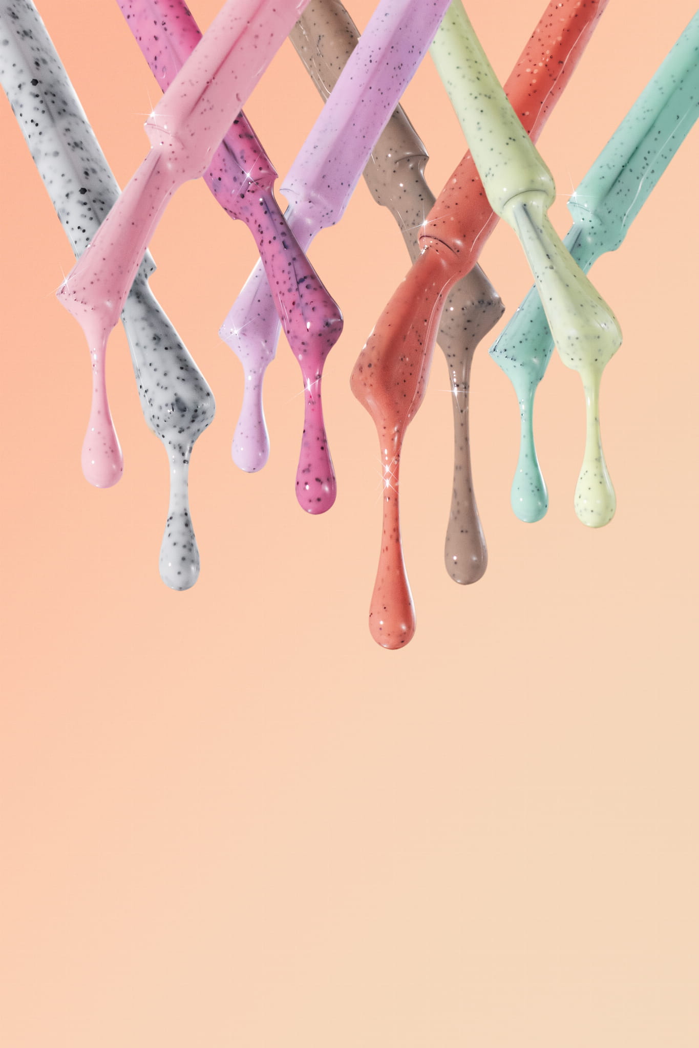 Kolekcja Art Sprinkle marki KODI PROFESSIONAL została stworzona dla stylistek, które lubią eksperymentować z fakturami i efektami specjalnymi. Lakiery tej serii zawierają dekoracyjne drobinki, które tworzą oryginalne wizualne akcenty na paznokciach, bez potrzeby stosowania dodatkowych ozdób.