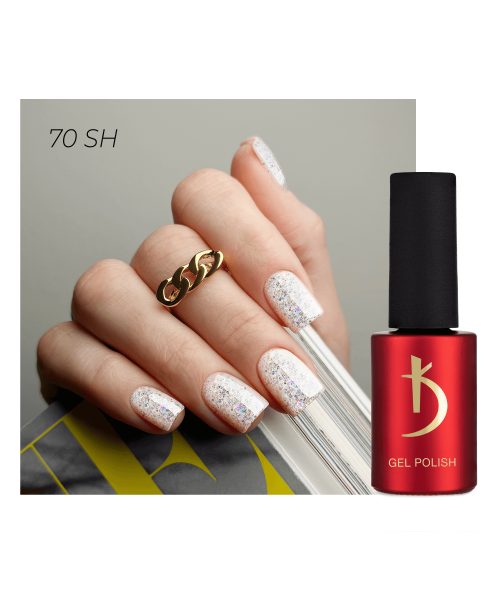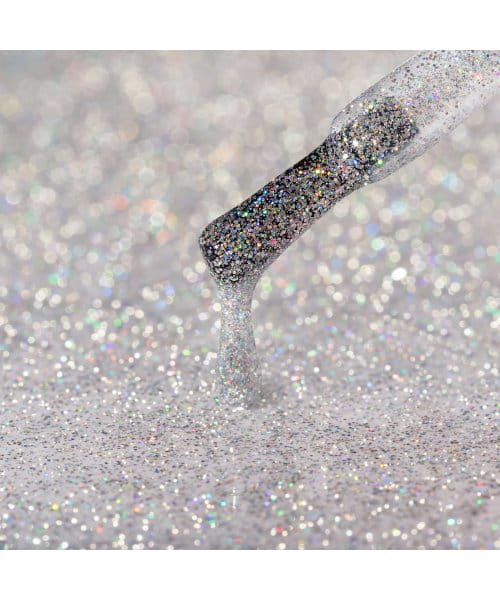 Lakier hybrydowy nr 70 SH (seria SHINE) posiada przezroczystą bazę z małym holograficznym srebrnym brokatem, kolor - holograficzny srebrny. Może być stosowany jako dodatkowa powłoka do koloru głównego.