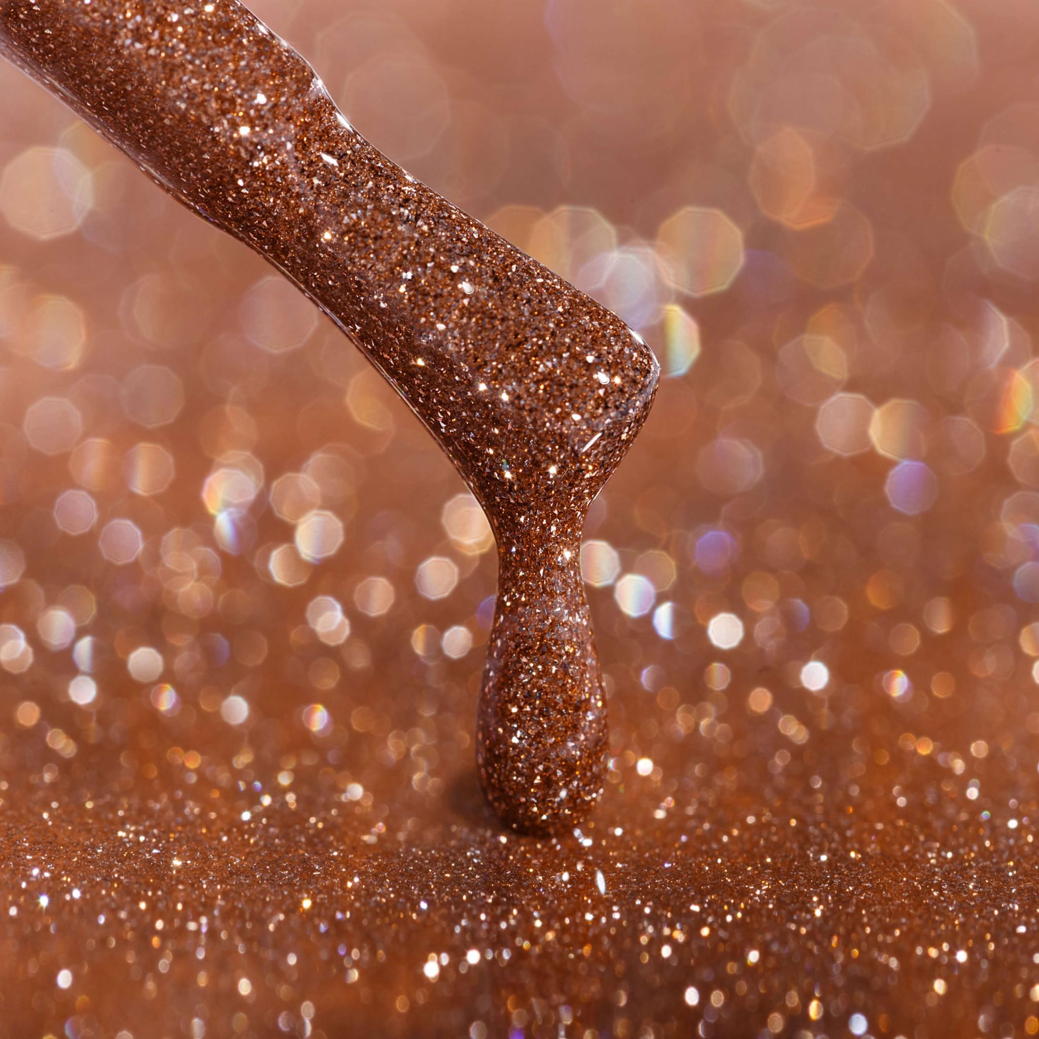Lakier hybrydowy nr 01 DS z kolekcji Diamond Sky od Kodi Professional zachwyca transparentną bazą, nasyconą miedzianymi, migoczącymi drobinkami, które odbijają światło i tworzą na paznokciach efekt iskrzącej się galaktyki. To perfekcyjny wybór dla tych, którzy pragną dodać stylizacji magii i luksusowego blasku.