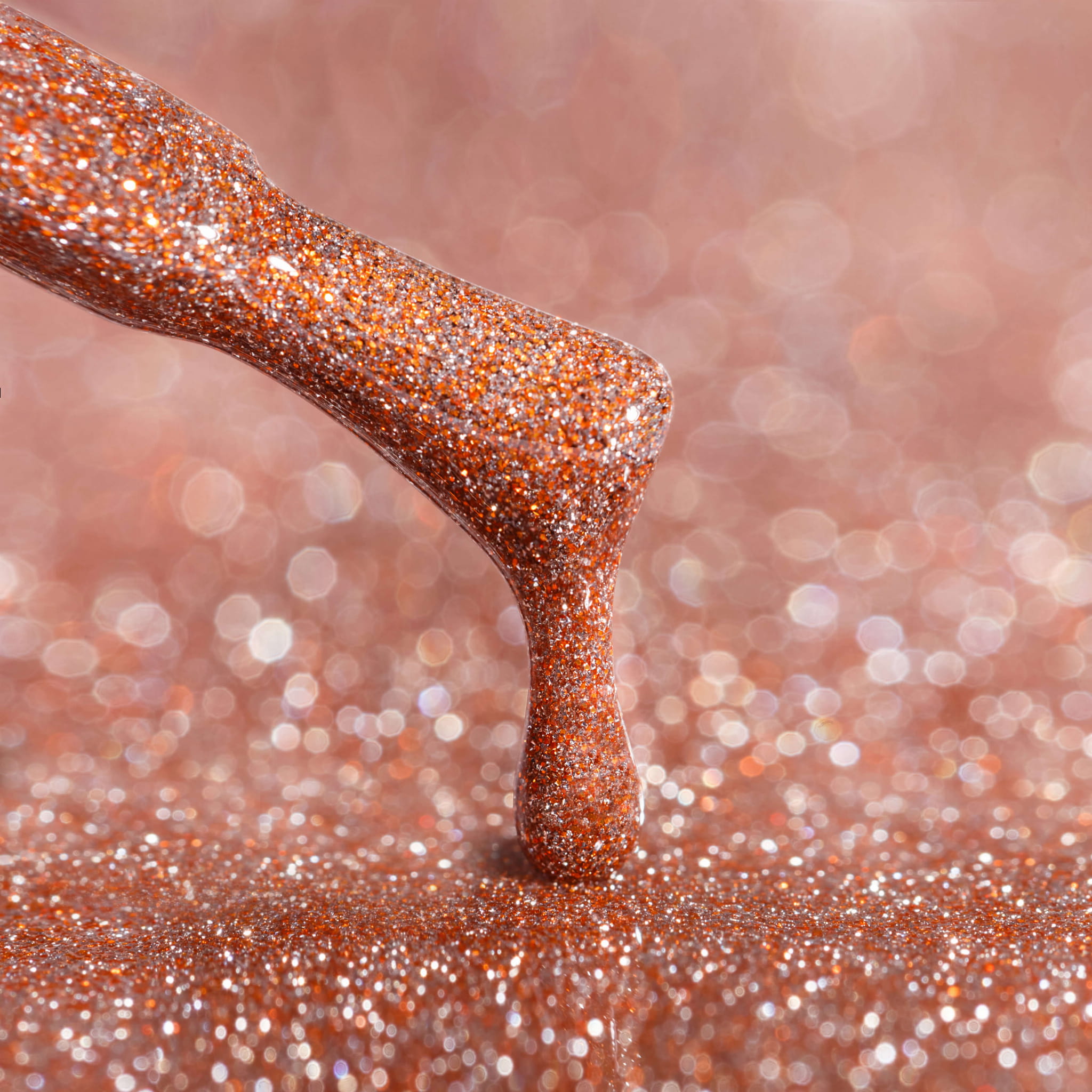 Efekt: brokatowy, holograficzny połysk w odcieniach miedzi i rudości